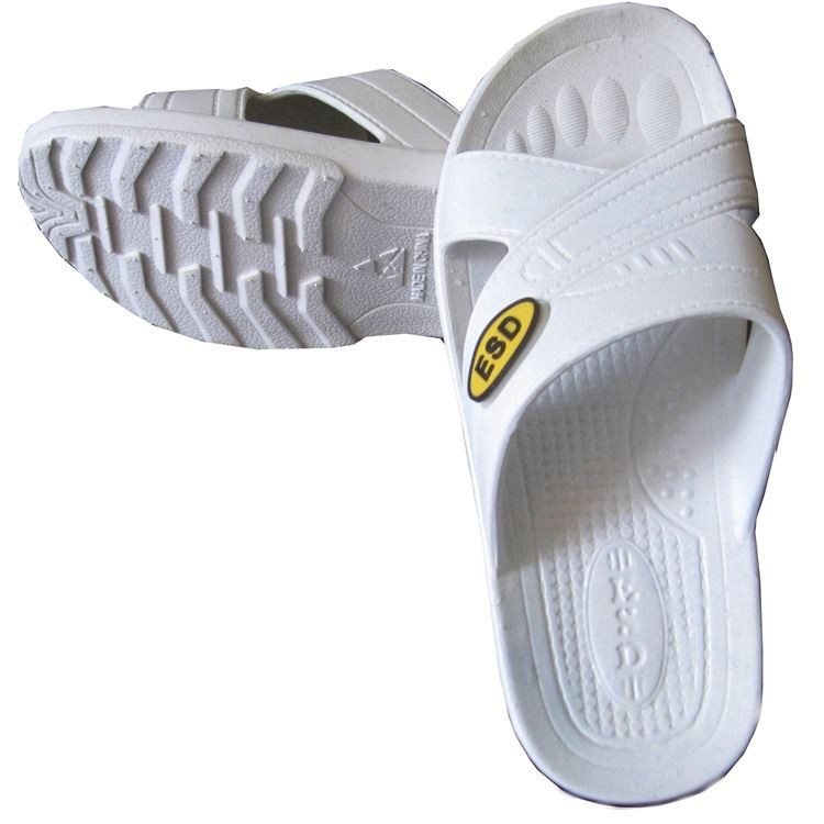 Antistatičke papuče i cipele izrađene su od PVC ili PU pjenastog materijala za disperziju električne energije, a đon je integralno formiran sa gornjim dijelom, a zatim ojačan na liniji. Može efikasno da isprazni statički elektricitet i formira kompletan antistatički sistem zajedno sa antistatičkom odećom. Elektrostatičke papuče su spretne i lagane, sa antistatičkim EVA u sredini đona, koji ublažava pritisak na stopala i čini ih mekšim i udobnijim.
